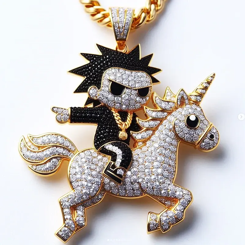 เครื่องประดับฮิปฮอปสุดเทรนดี้ ดีไซน์ยูนิคอร์น ตัวการ์ตูนอนิเมะ จี้เงินแท้ 925 ประดับมอสซาไนต์ รูปการ์ตูน ได้รับการรับรองจาก IGI