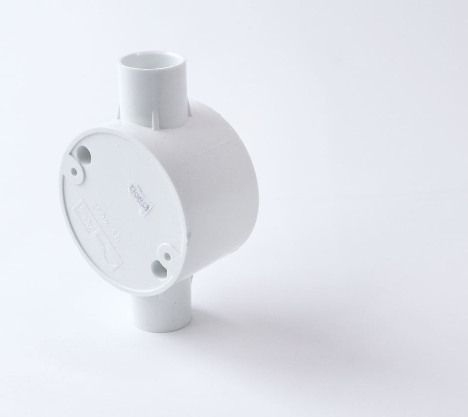 กล่องเชื่อมต่อสองทาง upvc ใช้สำหรับท่อไฟฟ้าพีวีซีมาตรฐานการส่งออกของ BS 4607 -ISO 9001-2015ผลิตในเวียดนาม