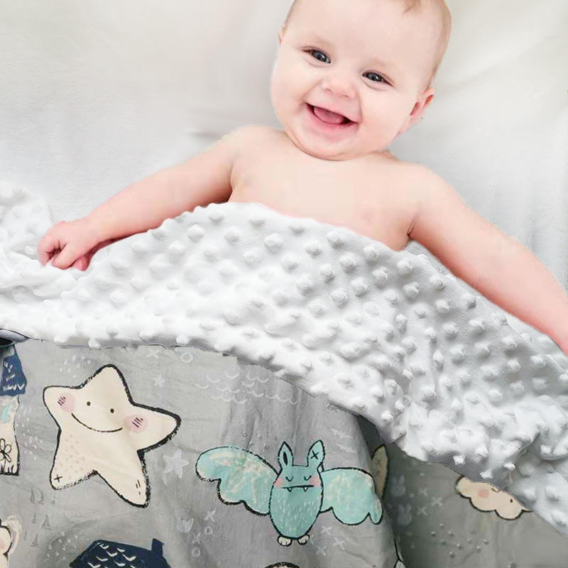 ผ้าห่มมิงกี้สองด้านสำหรับเด็กทารกผ้าห่มมิงกี้ถักแบบอุ่นนุ่มเป็นพิเศษสำหรับเด็กออกแบบได้ตามที่ต้องการ