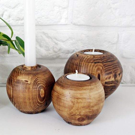 โถเทียนที่ไม่เหมือนใครที่ทำจากไม้ธรรมชาติแบบชนบทเป็นมิตรกับสิ่งแวดล้อมสำหรับตกแต่งบ้านและบรรยากาศคริสต์มาส