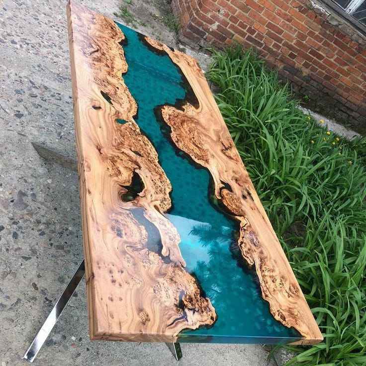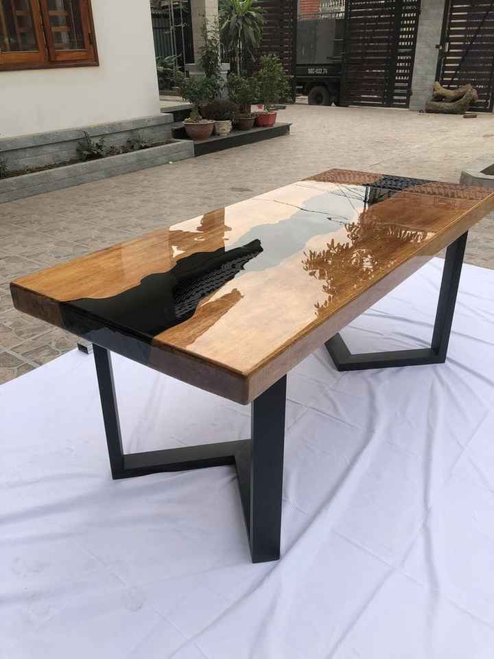การออกแบบที่ไม่ซ้ํากันโต๊ะกาแฟไม้อีพ็อกซี่โต๊ะอีพ็อกซี่โบราณสําหรับตกแต่งบ้านการออกแบบที่ซุปเปอร์