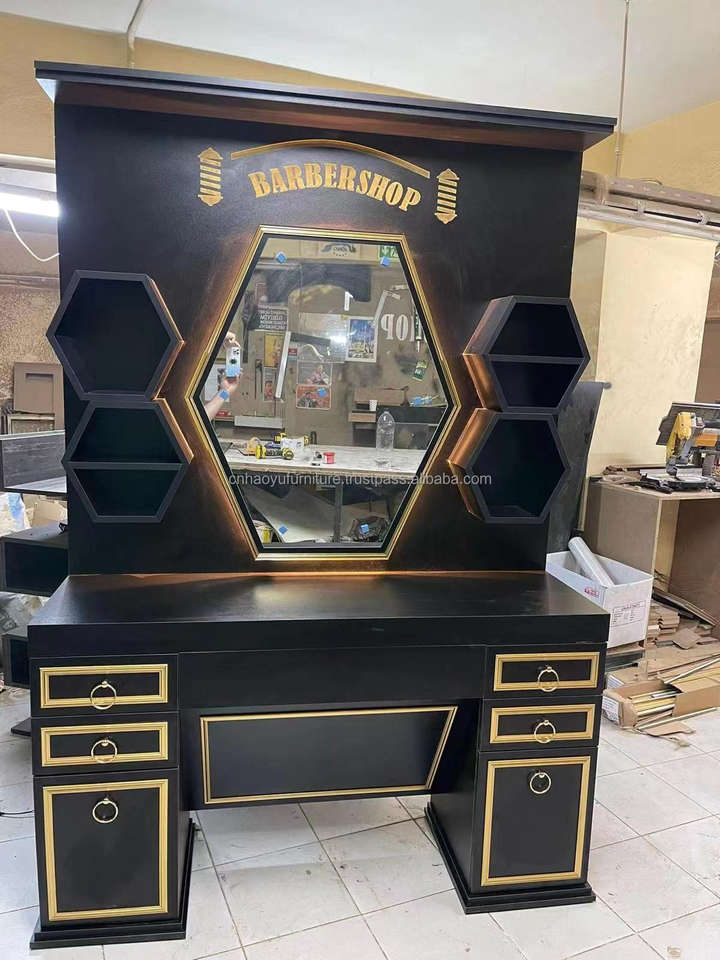 ที่ตัดผมร้านตัดผมพร้อมไฟ LED และลิ้นชักสำหรับผู้ชายตัดผมหรูหรามีเอกลักษณ์