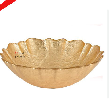 ชามเสิร์ฟอาหารทำจากโลหะสำหรับใช้ในโรงแรมบ้านและร้านอาหารดีไซน์เนอร์สีทองไม่เหมือนใคร