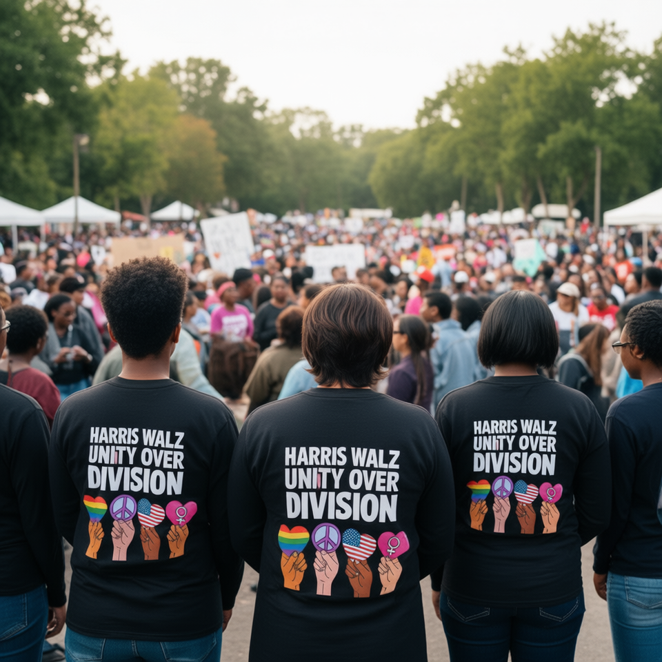 เสื้อยืดแขนยาวลายกราฟิก "ความรักและความสามัคคี" สำหรับผู้ใหญ่ ยูนิเซ็กส์ ไซส์พลัส คอกลม