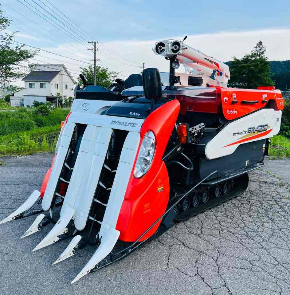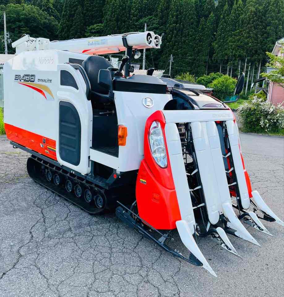 รถเกี่ยวข้าวคูโบต้า ER-438 แบบ 8 แถว ป้อนข้าวด้วยหัวเกี่ยว ใช้เครื่องยนต์ดีเซล ระยะห่างระหว่างแถว 300 มม.
