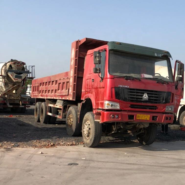 รถบรรทุกหนักมือสอง Sinotruck Howo 8x4 สำหรับขาย มาตรฐานไอเสียยูโร 2 เชื้อเพลิงดีเซล พวงมาลัยซ้าย สำหรับงานขนส่งในเหมือง กำลัง 251-350 แรงม้า