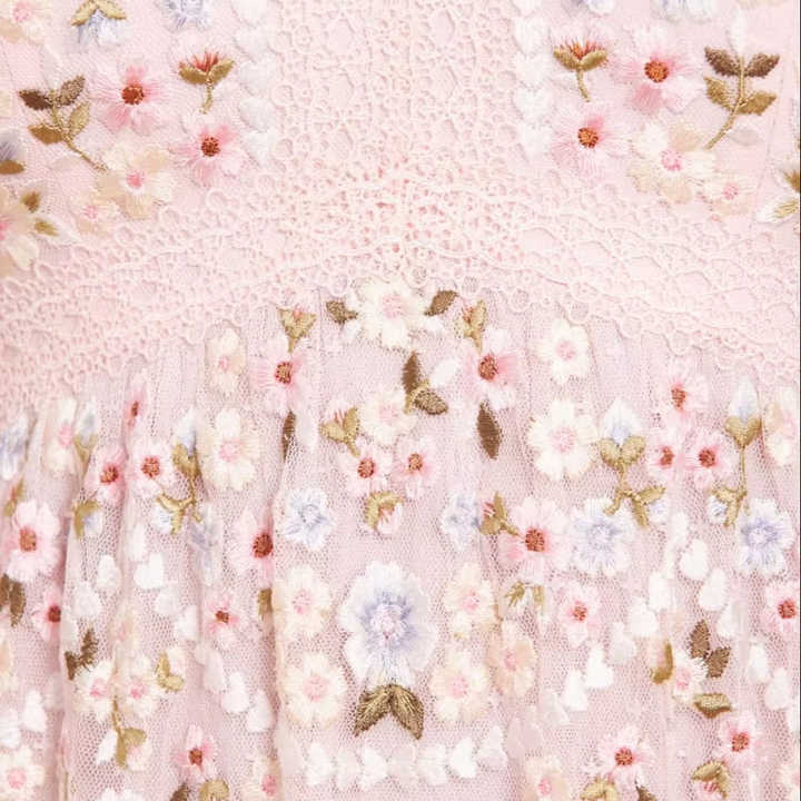 ชุดเดรสแม็กซี่คอวีประดับดอกไม้พร้อมแขนยาวสำหรับงานปาร์ตี้คลับงานสังสรรค์ตอนเย็นที่มีโลโก้ด้านหน้าเป็นครั้งคราว