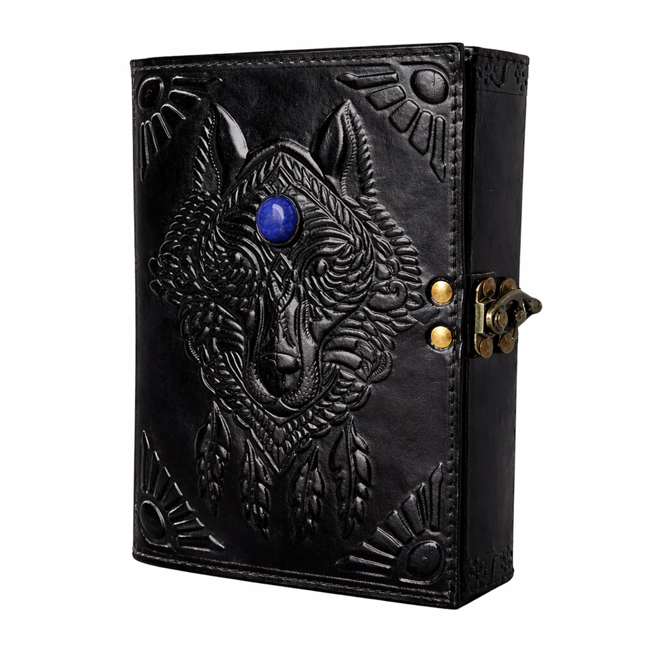 สมุดบันทึกปกหนังลายหมาป่าสีดำวินเทจ ขนาด A5 สมุดไดอารี่ปกแข็งแบบโบราณ กระดาษขอบฉีกแบบวินเทจ ของขวัญ