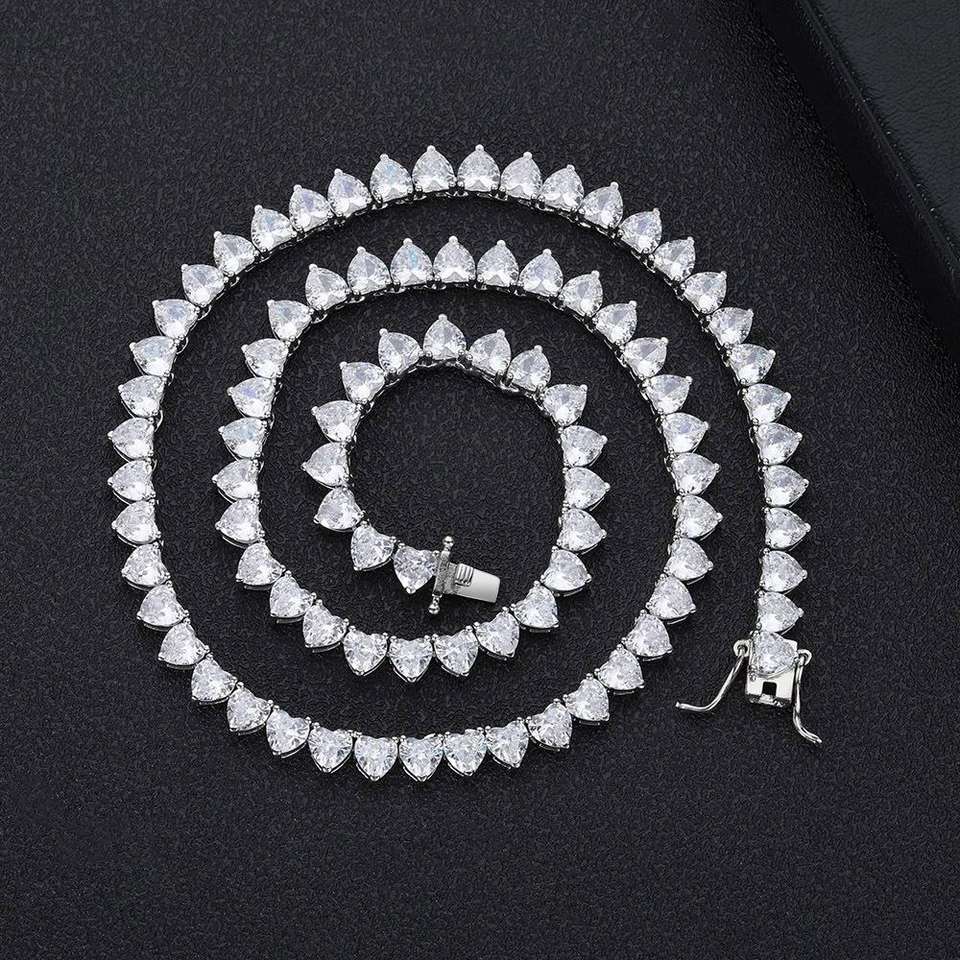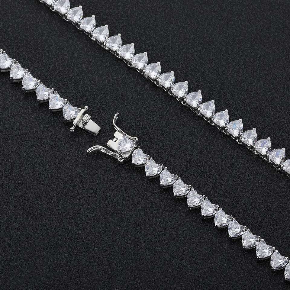 VVS Moissanite สร้อยคอโซ่เทนนิสทำจากทองเหลืองทรงกลม4มม. ประดับเพชรแนวฮิปฮอปสำหรับผู้หญิง