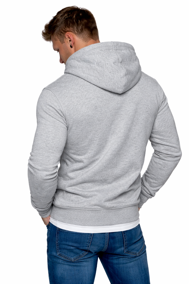 เสื้อฮู้ดดี้ผู้ชายทรงเข้ารูป คอทรงสูง ดีไซน์เก๋ ซิปและกระดุมแบบอสมมาตร พร้อมเชือกผูกสองเส้น สไตล์ลำลอง