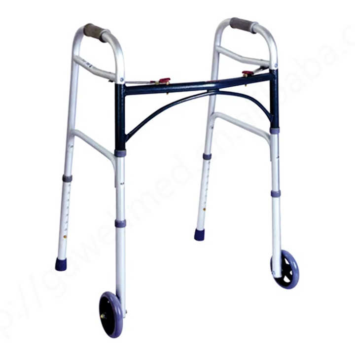 * วอล์คเกอร์ผู้ใหญ่พับได้น้ำหนักเบาสำหรับโรงพยาบาลผู้พิการรถเข็นพับได้ปรับความสูงได้อลูมิเนียม