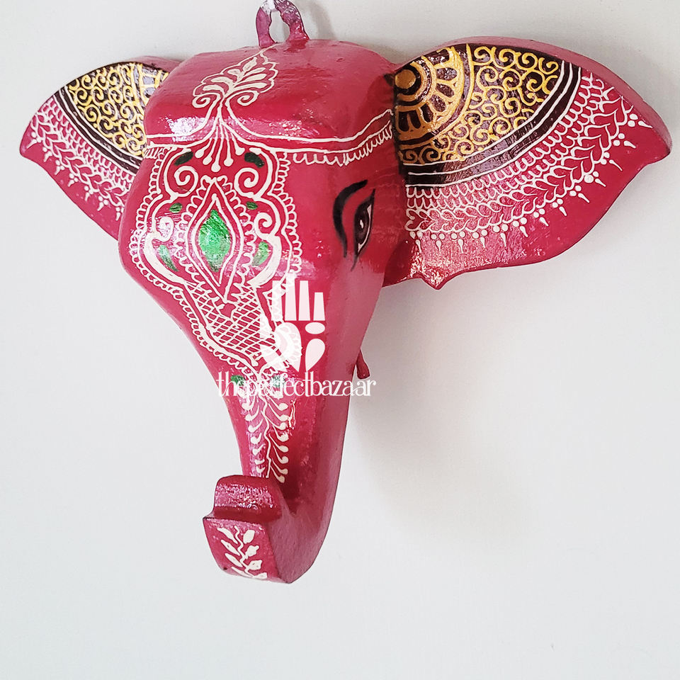 ของตกแต่งผนังรูปหัวช้างไม้สไตล์อาร์ตเดโค สีชมพู สำหรับเทศกาลดีวาลีและวันครบรอบ