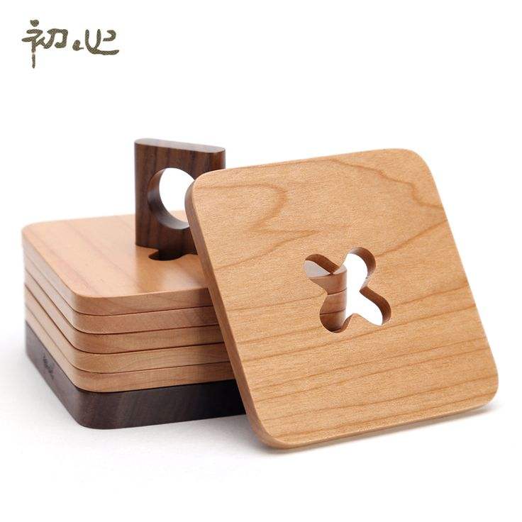 ที่รองแก้วไม้วอลนัทพร้อมที่วางแก้วกลมสำหรับเครื่องดื่มเย็นๆและร้อน