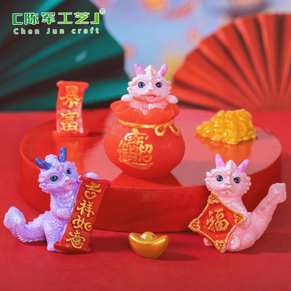 โมเดลมังกรปีใหม่สุดน่ารัก, กล่องสุ่ม, อุปกรณ์เสริม, จิ๋วสำหรับตกแต่ง, ของตกแต่งรถยนต์ขนาดเล็ก
