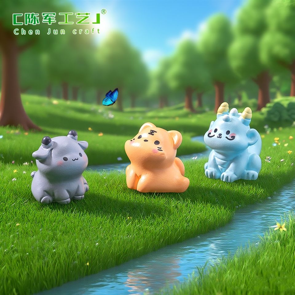 ตุ๊กตาการ์ตูนน่ารัก นั่ง รูปปั้นจิ๋ว 12 นักษัตรจีน ของตกแต่ง DIY ของประดับตกแต่งโต๊ะทำงานและรถยนต์