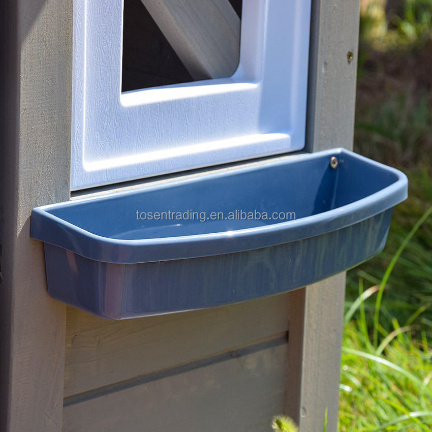 บ้านเด็กเล่นไม้สีข้าวสาลี หลังคาแดง พร้อมปล่องไฟและหน้าต่างเสิร์ฟวิชั่น - กระท่อมเล่นกลางแจ้งทนทานต่อทุกสภาพอากาศ