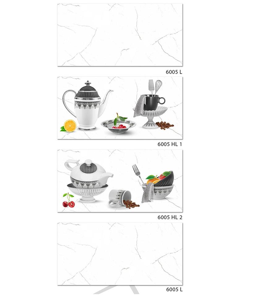 กระเบื้องสีขาวและสีเทาพร้อมกระเบื้องผนังห้องครัวเซรามิกดีไซน์ 3 มิติสีดําขนาด 30x60 ซม