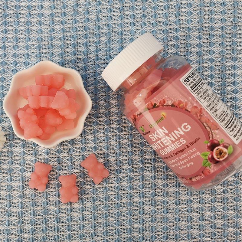 กัมมี่ไวท์เทนนิ่งกลูเมตส์บำรุงผิวเพื่อผิวขาวรสเสาวรสคอลลาเจนและไบโอตินและกลูตาไธโอน