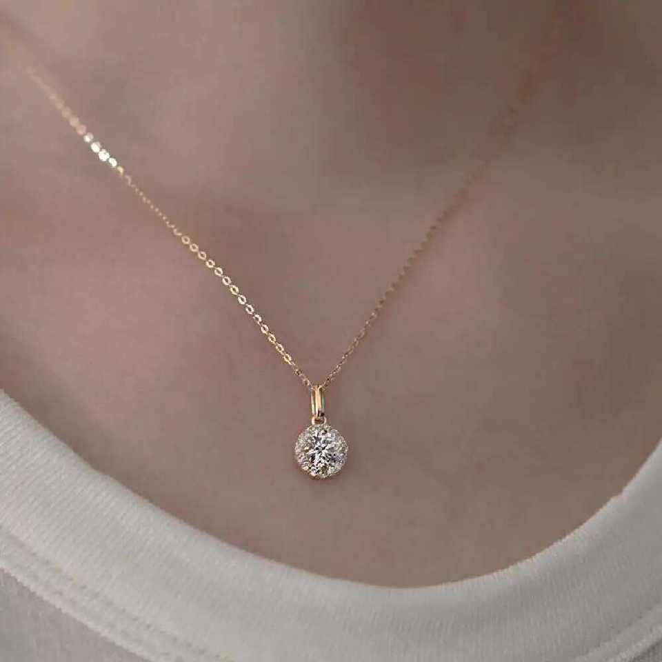 Beautiful and Trendy 9K Gold Charms Necklace with Micro-Inlaid Round Zircon Unisex Wholesale for Parties KJ393