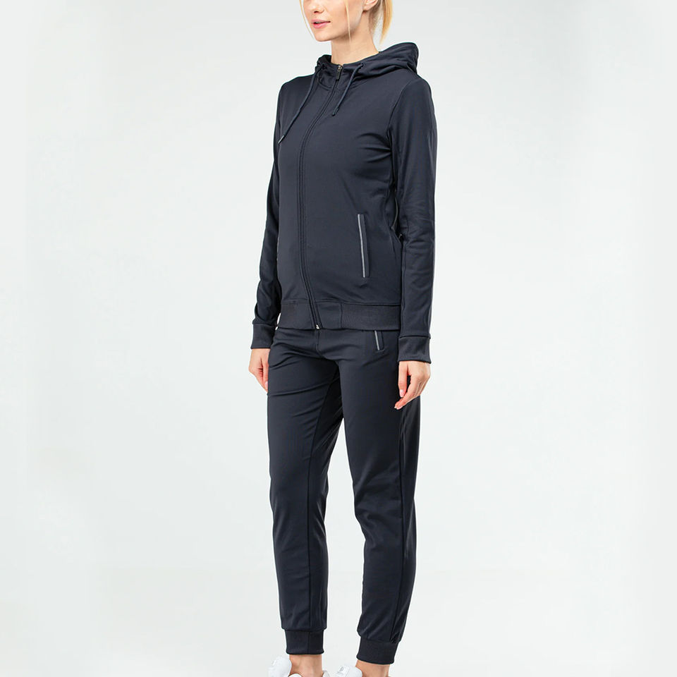ชุดวอร์มผู้หญิงขายดีแบบสั่งทำพิเศษ ไซส์ใหญ่ เสื้อฮู้ดผ้าฝ้ายแบบมีซิปและกางเกงจ็อกเกอร์ ชุดวอร์ม 2 ชิ้นสำหรับผู้หญิง