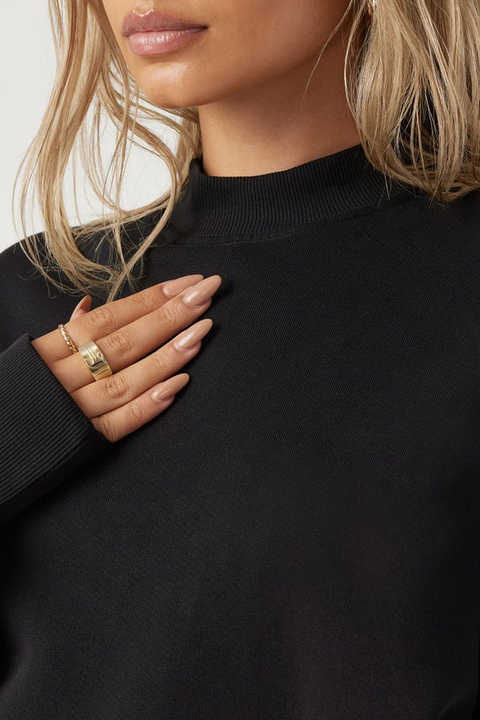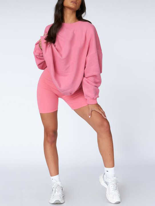 เสื้อสเวตเตอร์สตรีคอกลมเปิดไหล่ผ้าคอตตอนผ้าเฟรนช์เทอร์รี่สีพื้นปักโลโก้ขนาดพลัสไซส์สำหรับฤดูหนาว/ฤดูใบไม้ผลิ