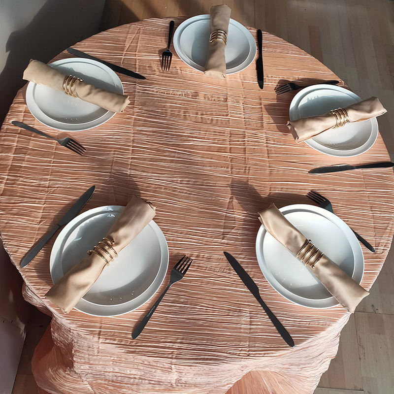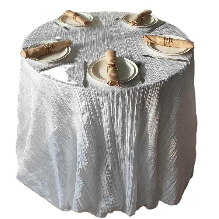 ผ้าปูโต๊ะแบบย่นสีขาวและมีสีสันทนทานสำหรับงานเลี้ยงงานแต่งงานแบบสมัยใหม่
