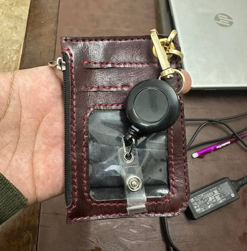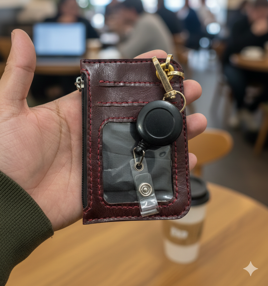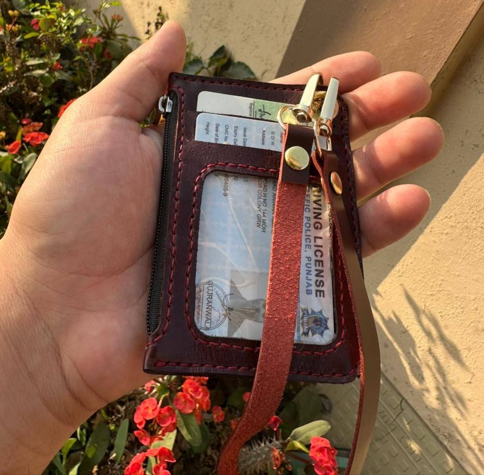 ซองใส่บัตรหนังแท้แบบ 2-in-1 พร้อมสายคล้องคอแบบยืดหดได้ กระเป๋าใส่บัตรธุรกิจแบบมีซิป