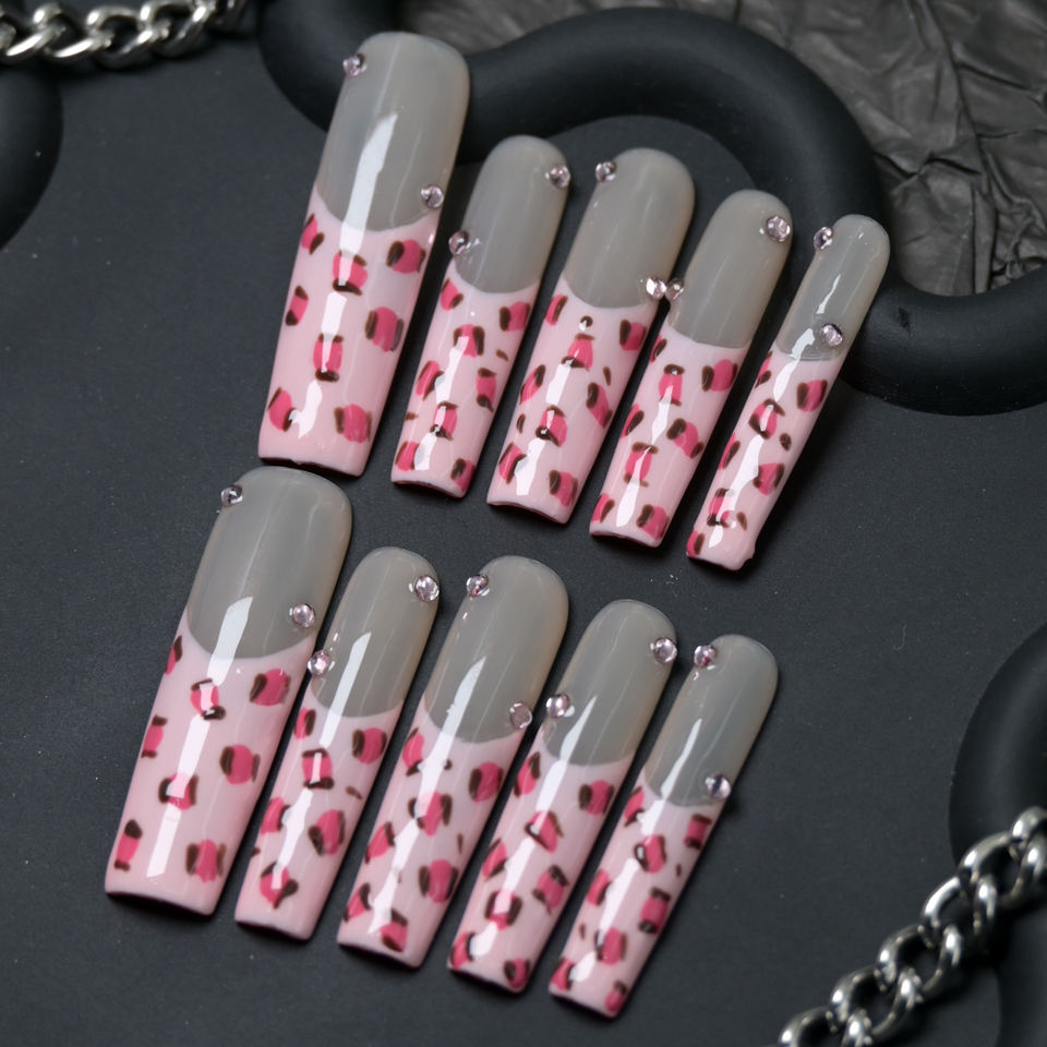 เล็บปลอมแบบกดติด ทำมือ รูปทรงโลงศพ ยาว 10 ชิ้น ใช้ซ้ำได้ ปิดเต็มเล็บ แบบสั้น อะคริลิค ราคาโรงงาน สีชมพู