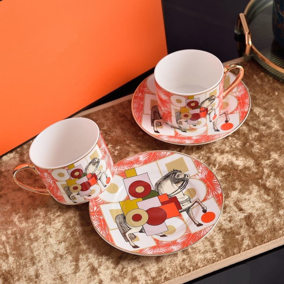 ชุดเครื่องดื่มพอร์ซเลนหรูหราพร้อมจานรองสำหรับงานแต่งงานและของขวัญ
