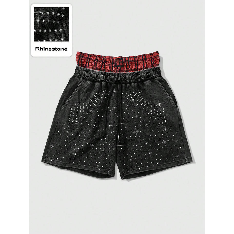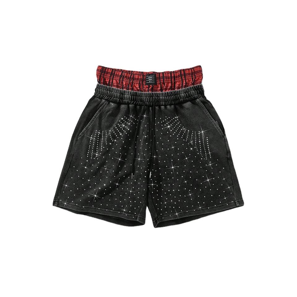 กางเกงขาสั้นผู้ชายประดับพลอยเทียมคุณภาพสูงผ้าคอตตอนสีทึบลาย100%