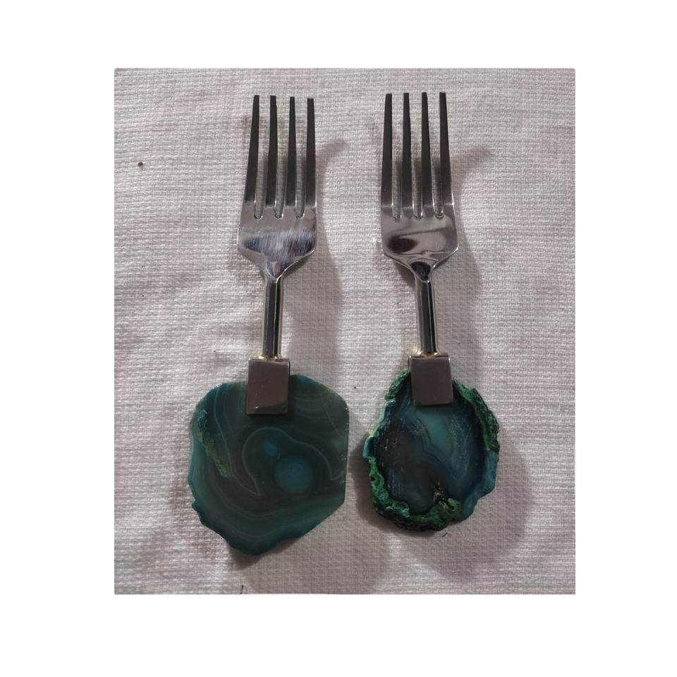 ส้อมอาเกตทำด้วยมือสำหรับโรงแรมส้อมขนมทำจากโลหะพร้อมด้ามจับอาเกตสำหรับบ้าน