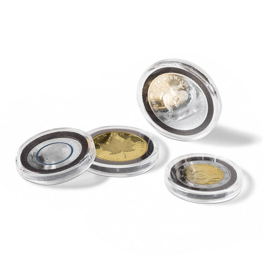 แคปซูลอะคริลิคใสที่ใส่เหรียญยูโรสหรัฐแบบสี่ส่วน