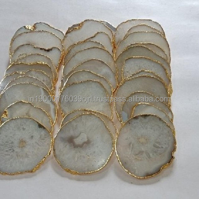 crystal crafts factory price natural stone healing gemstone green onyx natural crystals slice coaster with gold trim