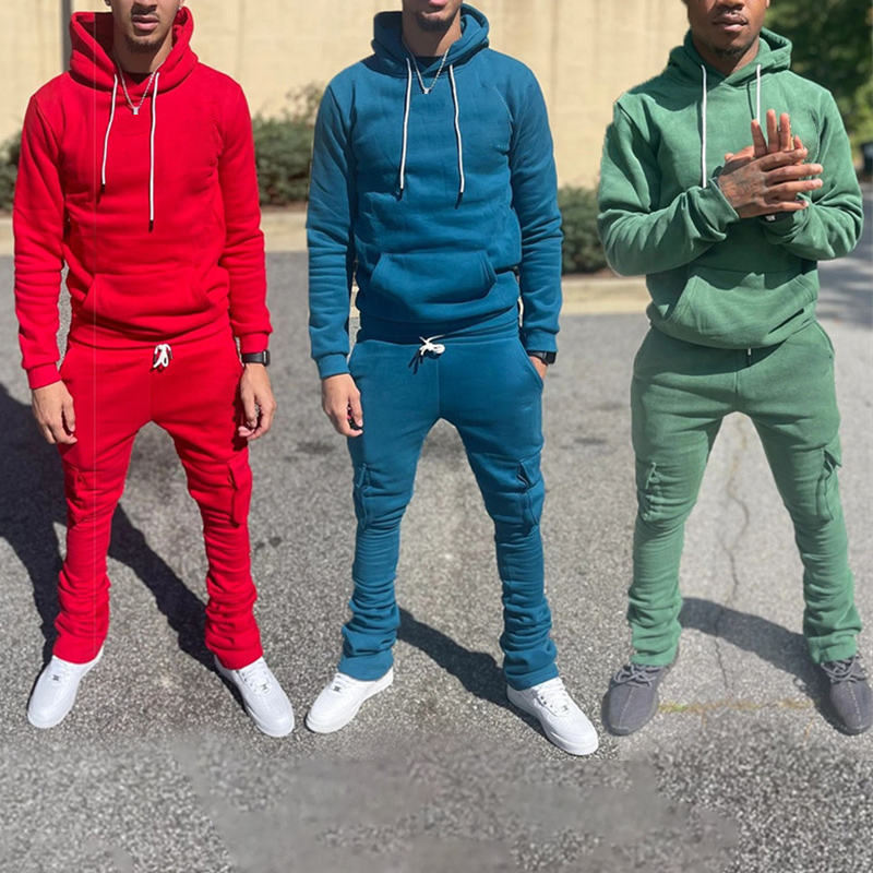 ชุดวิ่งผ้าฝ้ายพิมพ์ลายเทอร์รี่กางเกงวอร์มและมีฮู้ดชุดวอร์มสำหรับผู้ชาย
