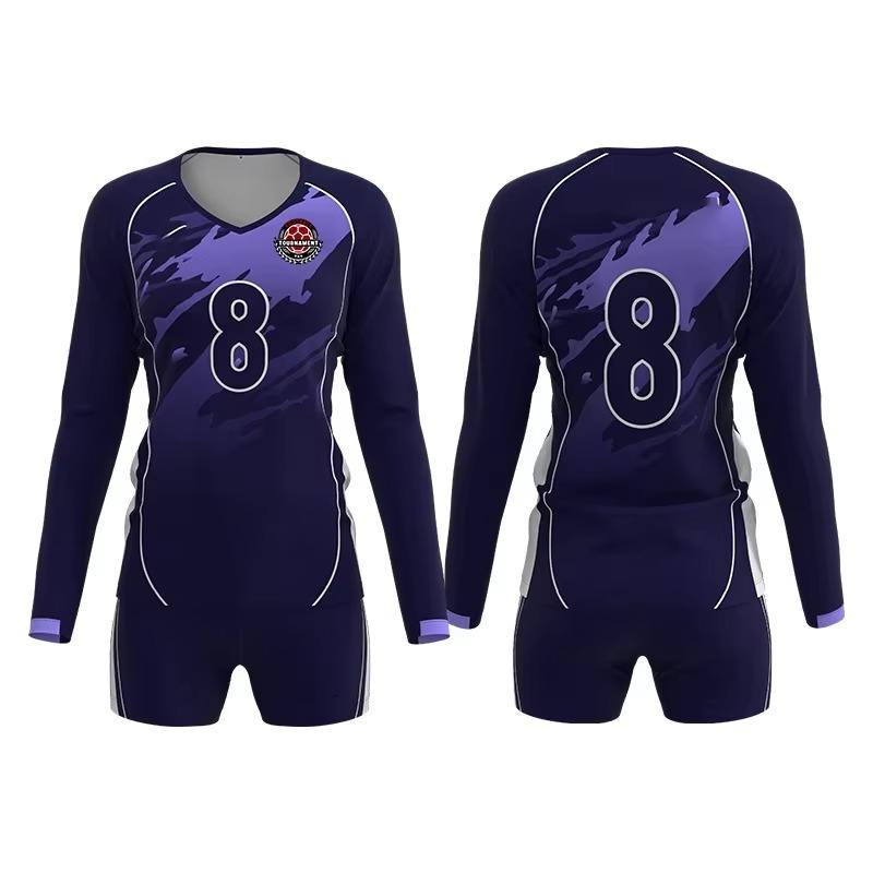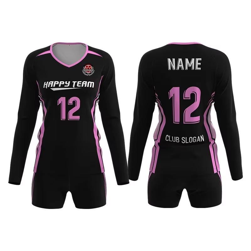 ชุดกีฬาผ้าโพลีเอสเตอร์แห้งเร็วเครื่องแบบวอลเลย์บอลแขนเต็มปรับแต่งได้