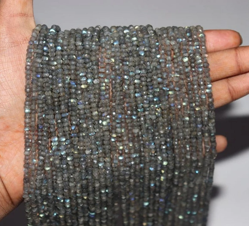 ลูกปัดลาบราโดไรต์แบบเม็ด คริสตัลหินบำบัด สำหรับทำเครื่องประดับ สีเทา-น้ำเงิน ได้รับการรับรองจากบุคคลที่สาม ขายส่ง