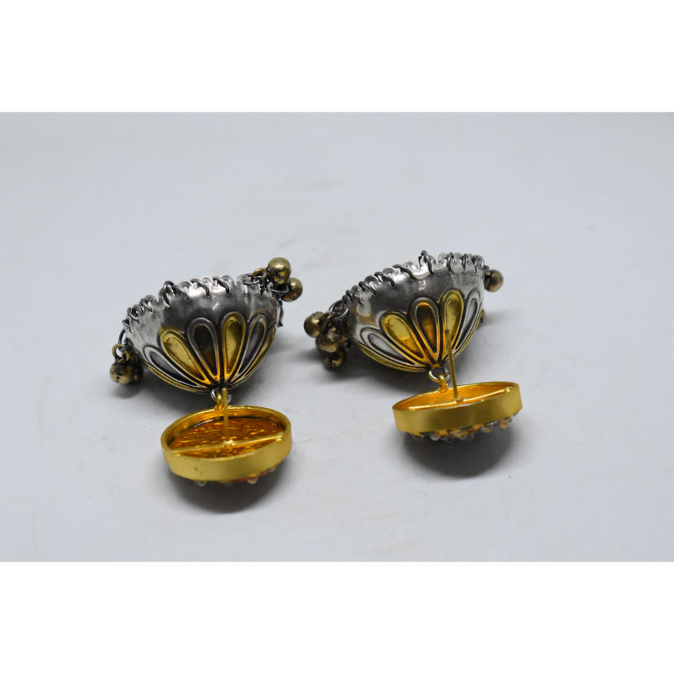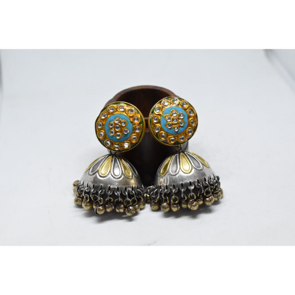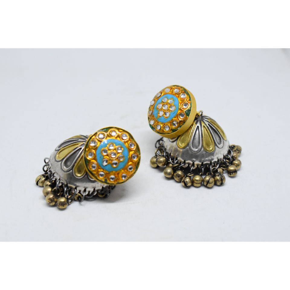 ต่างหูห่วงทองเหลืองทำมือลายมีนาการี แบบด้าน สองสี แฟชั่นล่าสุดปี 2025 สำหรับเด็กหญิงและสตรี