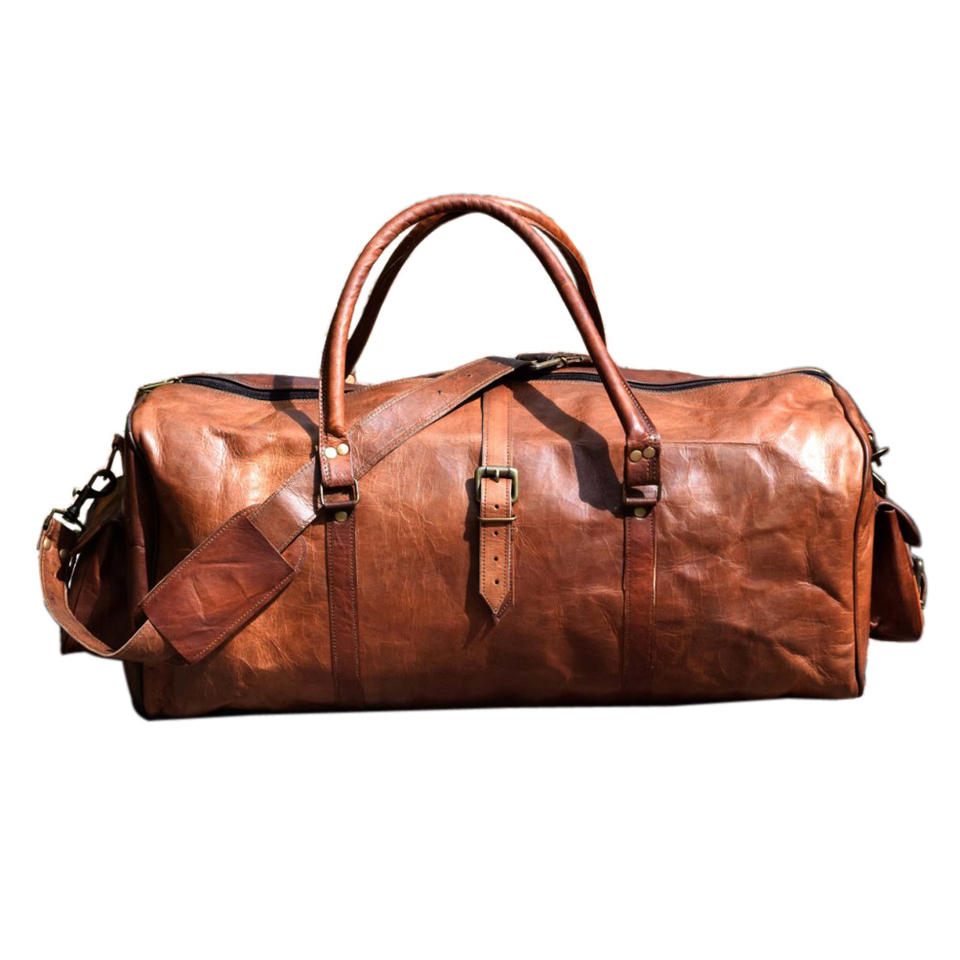 กระเป๋าดัฟเฟิลกระเป๋าเดินทางหนังแท้สำหรับผู้ชายกระเป๋าเดินทางเล่นกีฬาเข้ายิมสำหรับใช้ในชีวิตประจำวัน