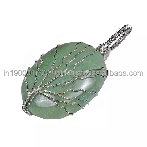 ต้นไม้แห่งชีวิตหินธรรมชาติคริสตัลรักษาหินอัญมณีอาเกตใสควอตซ์เครื่องประดับสร้อยคอจี้รูปไข่
