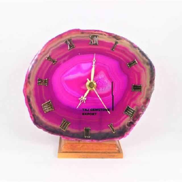 นาฬิกาแขวนผนังหินอาเกตขัดเงาธรรมชาติ หินบำบัด อาเกตสีชมพู ออนิกซ์ สำหรับเป็นของขวัญคริสตัล