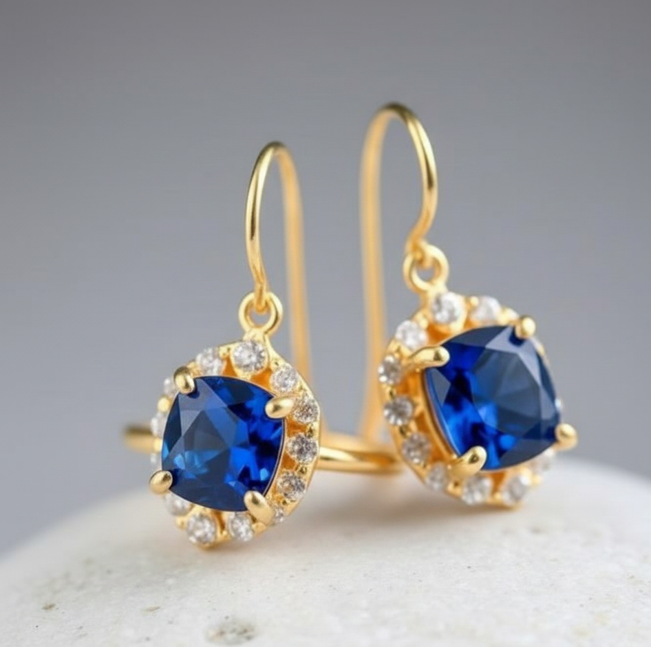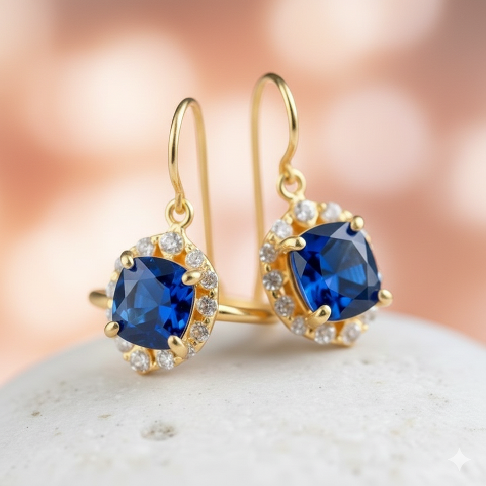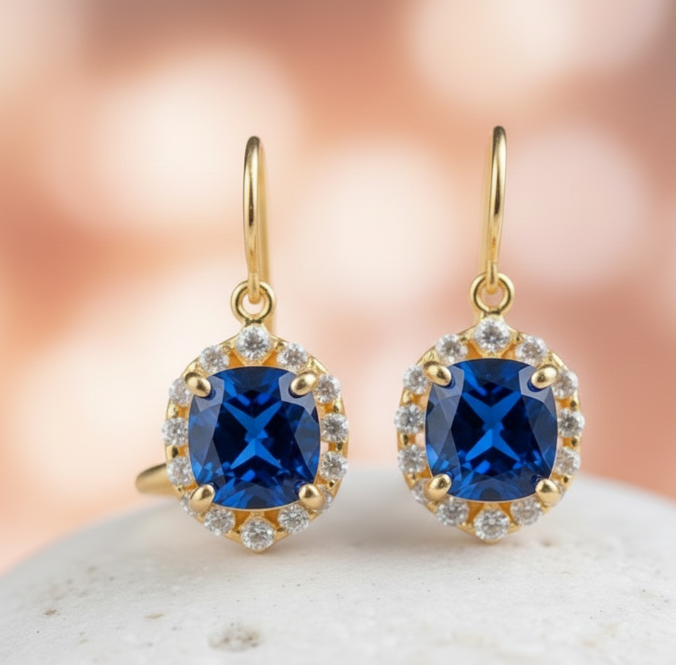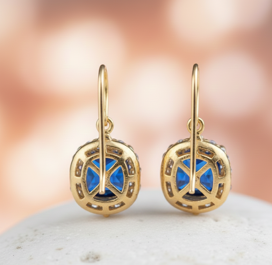ต่างหูบลูไฮโดร&ซีแซด 4 นิ้ว 8 กรัม | แปดเหลี่ยมขนาด 10x12 | เครื่องประดับเงินแท้ 925 ชุบทอง 18K สำหรับงานแต่งงาน ของขวัญสำหรับเธอ