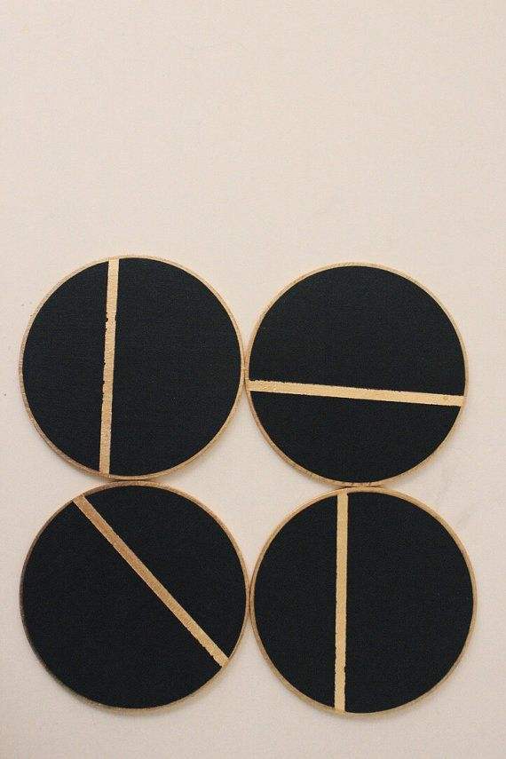 ชุดจานรองแก้วลายเรขาคณิตสีดำและสีทองดีไซน์ทันสมัยสำหรับการตกแต่งโต๊ะอาหาร