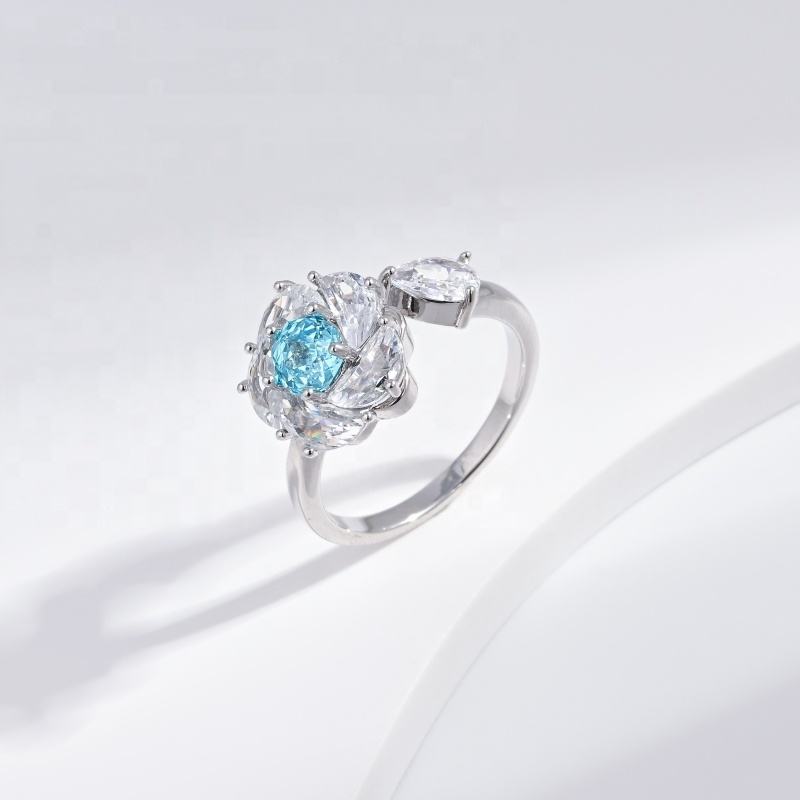 แหวนเงินแท้ 925 ประดับเพชรคิวบิกเซอร์โคเนียทรงโรสคัท ราคาส่ง เครื่องประดับคุณภาพดี แหวนแต่งงานแบบเปิดประดับพลอยหลากสีสัน ดีไซน์สวยงามสำหรับสาวๆ