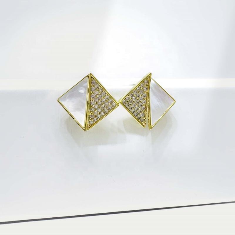 ต่างหูเงินแท้ 925 ชุบทอง 18k ดีไซน์เรียบหรู สองสี ประดับพลอยทรงเรขาคณิต สำหรับผู้หญิง ราคาส่ง