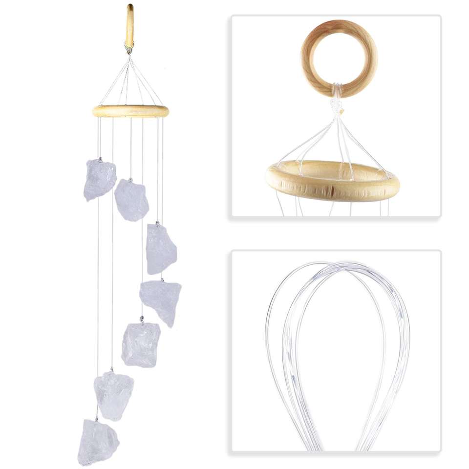 กระดิ่งลมหินธรรมชาติ,หินควอตซ์คริสตัลใสหินดิบกระดิ่งลมของตกแต่งบ้านคริสตัลกระดิ่งลม