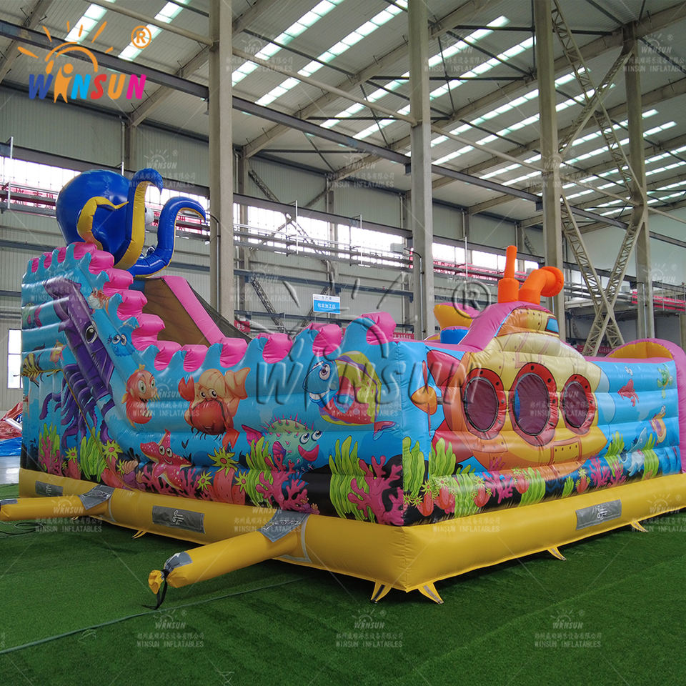 สนามเด็กเล่นเป่าลม Winsun รูปแบบธีมปลาหมึก สำหรับกลางแจ้ง ทำจาก PVC กันไฟ ขนาดสั่งทำได้ บ้านลมเด้งดึ๋งสำหรับกระโดดเล่น