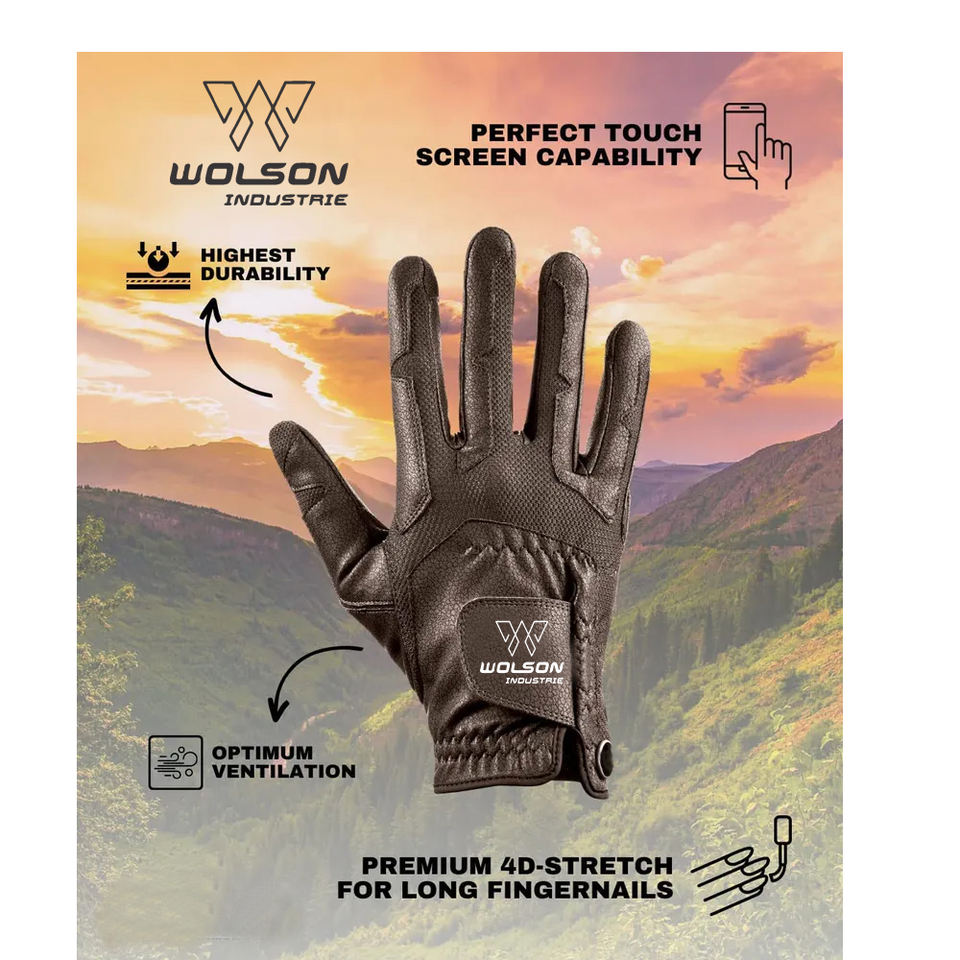 Wolson ถุงมือขี่ม้าแบบเต็มนิ้วสำหรับทุกเพศ, ถุงมือหนังระบายอากาศหน้าจอสัมผัสใช้ได้กับกีฬากลางแจ้ง