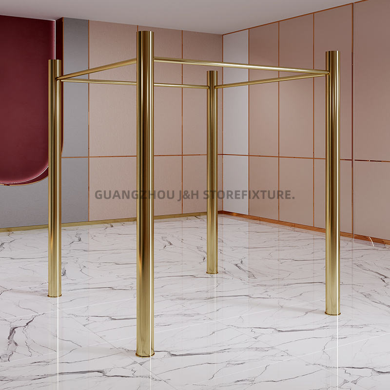 ชั้นโชว์สแตนเลสสำหรับร้านขายเสื้อผ้าของผู้หญิงชั้นโชว์เสื้อผ้าของผู้ชายเกาะทำจากไทเทเนียมสีทอง