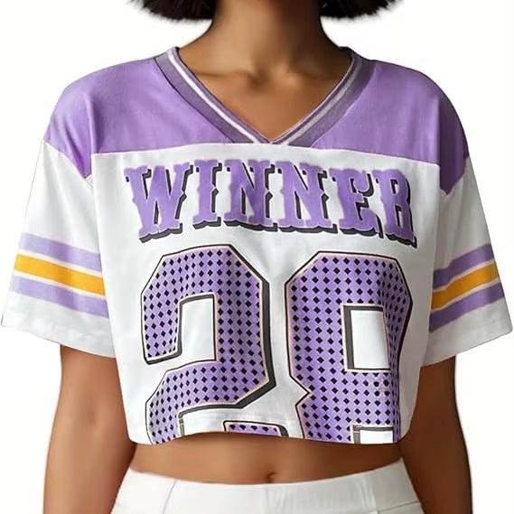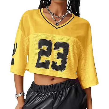 เสื้อเจอร์ซีย์อเมริกันฟุตบอลแบบครอปโอเวอร์ไซส์ พิมพ์ลายแบบซับลิเมชั่น แห้งเร็ว ระบายอากาศได้ดี แขนสั้น เหมาะสำหรับการฝึกซ้อม 100% ผ้าคุณภาพดี ใส่ได้ทั้งชายและหญิง