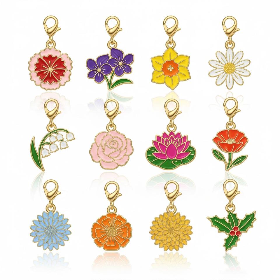 คลิปหนีบโลหะเคลือบสีลายดอกไม้ประจำเดือนเกิดรูปกุ้งก้ามกรามเสริมโชคดีสำหรับผู้หญิง